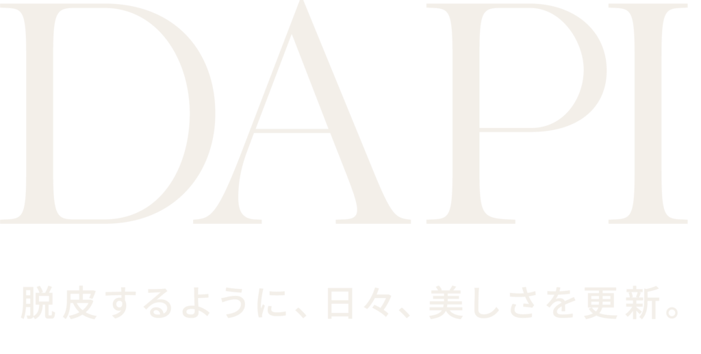 爬虫類が古い皮を脱ぎ捨て、新たな姿へと生まれ変わる「脱皮」。私たち人間もまた、秘めたる可能性を解き放ち、日々、美しさを更新していけるようにと想いを込め、「DAPI(ダピ)」と名付けました。